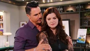 Bill was annoyed when Katie got rid of all his alcohol. It was revealed that he and Katie hadn't been making love, so Brooke arranged a night of passion for them, which backfired when Katie smelled whiskey on Bill's breath. Brooke pleaded Katie's case despite the sparks that remained between her and Bill, who thought of Brooke while in bed to Katie.