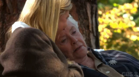 While at Big Bear, Eric was suddenly called into an emergency board meeting at Forrester Creations. Not wanting to leave his ailing wife's side, Stephanie convinced Eric to go to the meeting and called Brooke to be her caretaker until Eric returned. Stephanie soon realized after beginning to cough blood up that the end was sooner than she had thought. After seeing a deer outside the window, Stephanie told Brooke it was time. Brooke thought she had met for more medicine, but Stephanie wanted to have one last look at everything outside and feel the sun on her face. The two former rivals then sat on a bench overlooking the lake as both waited for Eric's return.